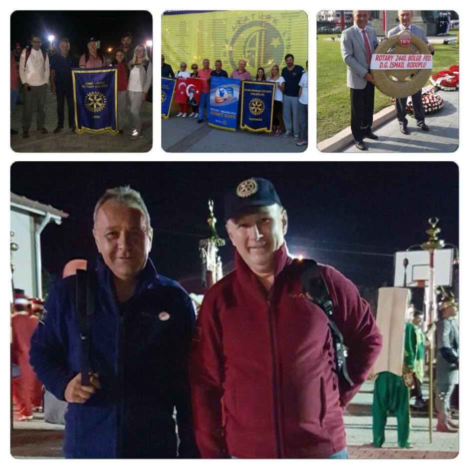 2016 – 2017 döneminde, 2. ayı tamamlamış bulunmaktayız. Son toplantımızı 25 Ağustosu, 26 Ağustosa bağlayan gece Afyon Zafertepe’de gerçekleştirdik. Kulübümüzden başkanımız Kaner Kavcıoğlu ve asbaşkanımız Dinçer Layık, Rotaract kulübümüzden Başkanımız Serkan, Asbaşkan İrem ve sayman Hande arkadaşlarımız katılım gösterdiler. Mavişehir Rotary kulübü geçmiş dönem başkanlarından Cem Karagözlü, Dönem Guvernörümüz İsmail Rodoplu ve ggeçmiş dönem başkanımız Metin Hepyükselen’in sponsorluğunda 2 misafirimiz daha bulunmaktaydı. Her ne kadar yorucu olsa da, bir o kadar duygu yüklü geçen 4 saatlik yürüyüş sonunda ZAFER bayramının anlamı çok daha iyi anlaşılıyor. Orada Mudanya Rotary Kulübü önderliğindeki diğer Rotaryen grup ile birleştik ve 20 kişilik bir grup ile Rotary i temsil ettik.